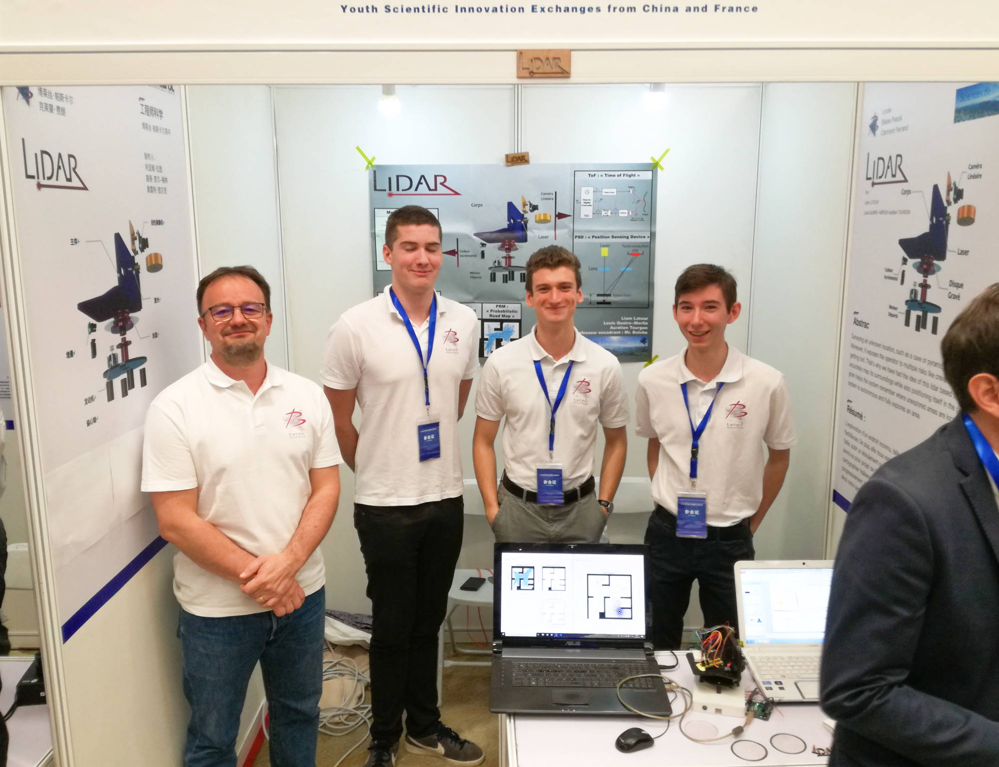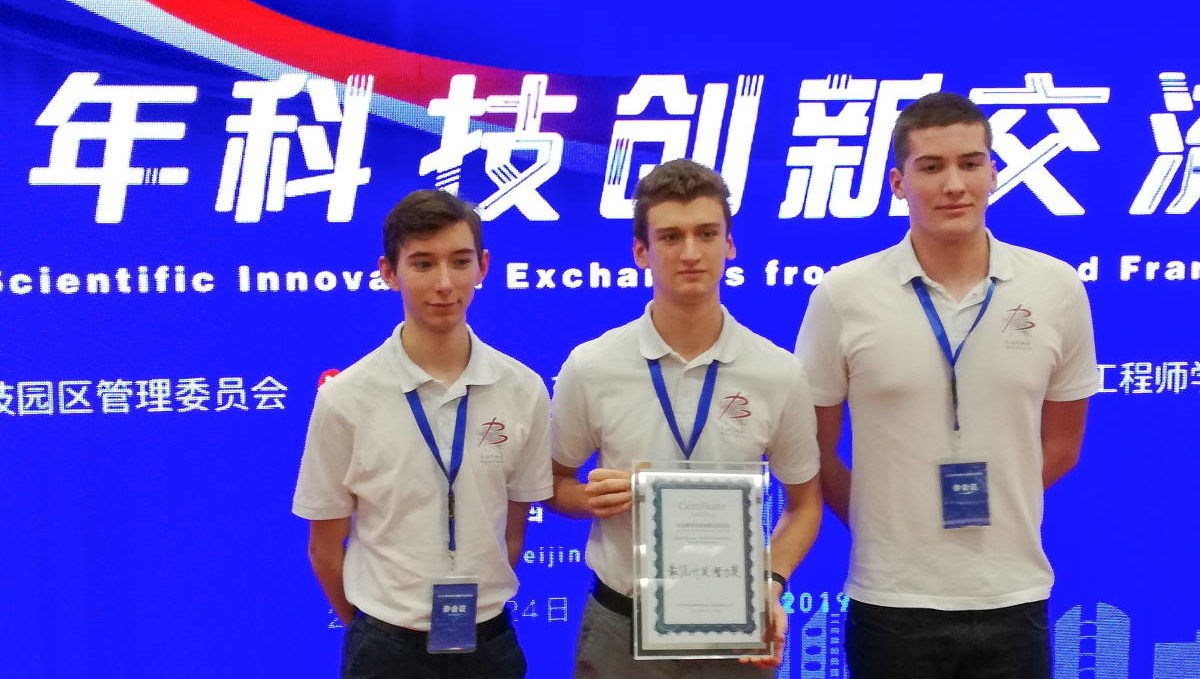 Dans le cadre d’échanges scientifiques avec l’école Centrale de Pékin, l’association Union des Professeurs de Sciences et Techniques Industrielles (UPSTI - https://www.upsti.fr/) avait invité deux équipes d’étudiants Chinois à participer à cette phase finale. Impressionnés par la qualité des projets présentés par les Français, les directeurs/représentants de l’Université de Beihang ont décidé d’inviter les équipes lauréates des OSI Françaises 2019 à Pékin pour participer à l'évènement « Youth Scientific Innovation Exchanges from China and France ». Ainsi, ce Jeudi 24 octobre 2019 au Centre d'Exposition de Pékin, dans le Science Park de Zhongguancun, quatre équipes Françaises, dont nos trois Auvergnats, concouraient lors de cet évènement avec les équipes d'étudiants de l'Université de Beihang, de l'Ecole Centrale Pékin ainsi que des élèves du lycée français de Pékin.